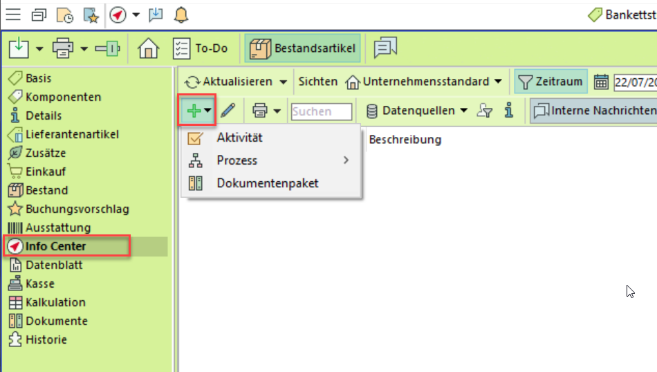 In jedem Artikel lassen sich jetzt im Info Center verknüpfte Datensätze sehen und anlegen.