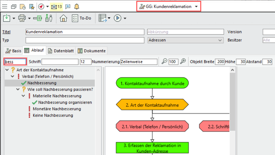 Finden Sie Untergruppen innerhalb von geschachtelten Artikelgruppen oder einzelne Prozesschritte in Prozessvorlagen leicht über das neue Eingabefeld für die Matchcodesuche.