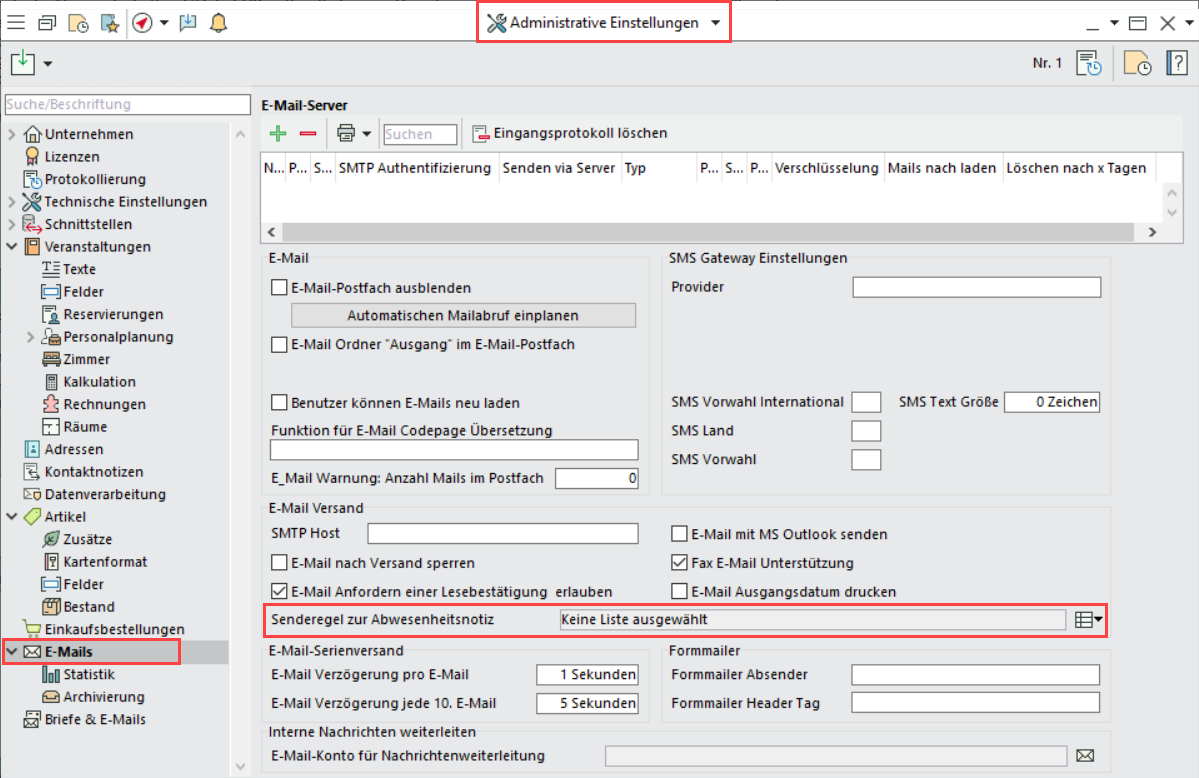 Stellen Sie unter Administration > E-Mails > "Senderegel zur Abwesenheitsnotiz" ein, wenn unter bestimmten Bedingungen eine aktivierte Abwesenheitsnotiz nicht gesendet werden soll.