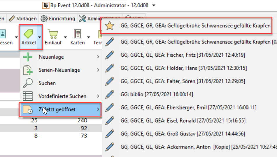 Öffnen Sie Ihre meistgebrauchten Datensätze über das Icon "Zuletzt bearbeitete Datensätze".
