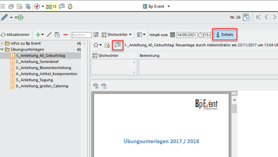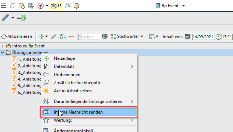 Verzeichnisobjekt direkt mit Interner Nachricht verknüpfen