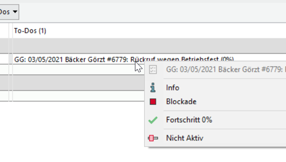 Wichtige Details zu dem Eintrag sehen Sie mit Rechtsklick im Kontextmenü. Ein Doppelklick öffnet die To-Do-Liste direkt mit Fokus auf dem gewählten Eintrag.