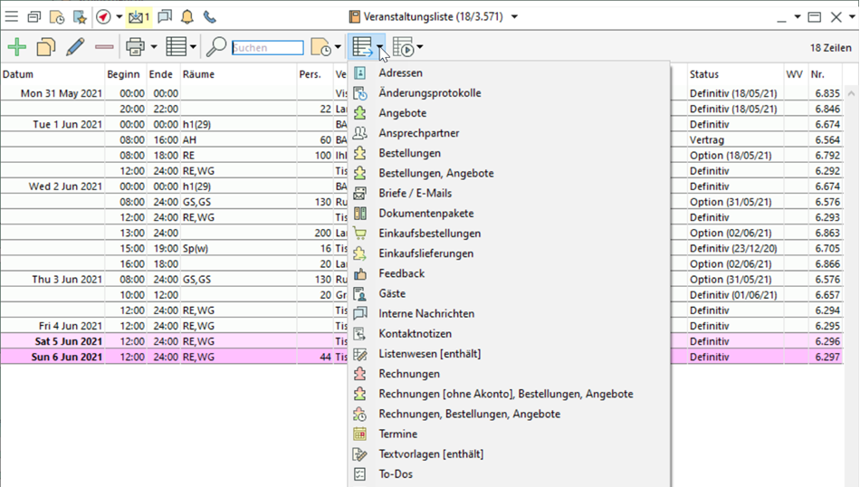 In Listen erkennen Sie jetzt anhand der vorgestellten Icons leichter den Datenkontext aller angebotenen Zieldaten.