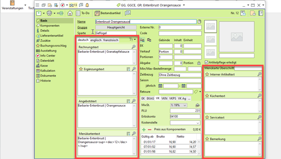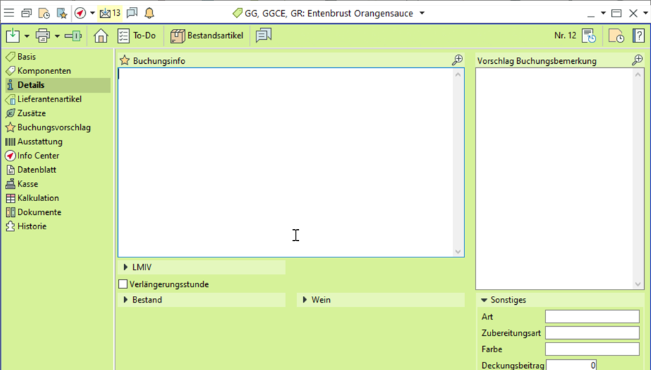Auf einem neuen Reiter "Details" sind fast alle Detailfelder zusammengefasst. während die "Lieferantenartikel" und "Zusätze" nun auf eigenen Reitern zu finden sind.