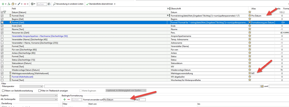 Legen Sie in der Spalte "Alias" eine Kurzbezeichnung an, die dann für Formeln und in der Textverarbeitung verwendet wird.