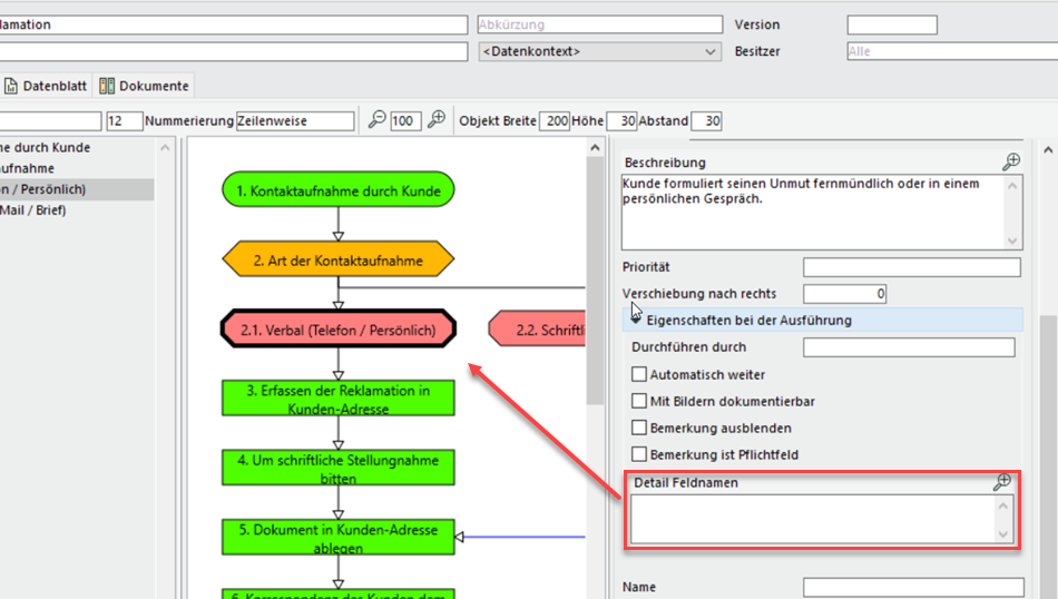 Lassen Sie nicht nur in einzelnen Schritte, sondern auch im Prozess als ganzen Detailfelder anzeigen.