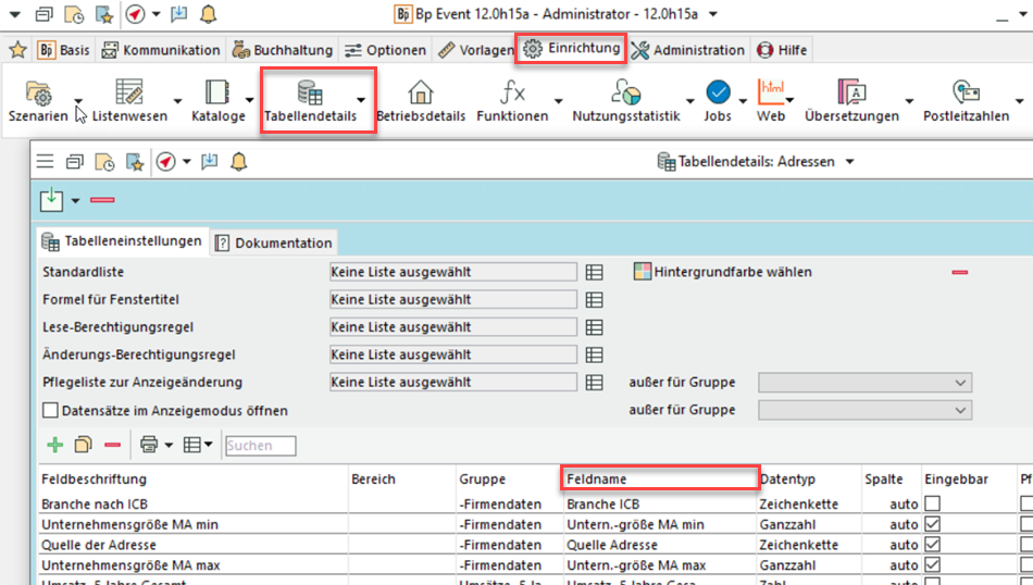 Geben Sie dafür unter Basis > Prozesse > Prozessvorlagen > Detail Feldnamen die Feldnamen der zuvor unter Einrichtung > Tabellendetails angelegten Felder ein. Felder können so flexibel eingefügt werden.