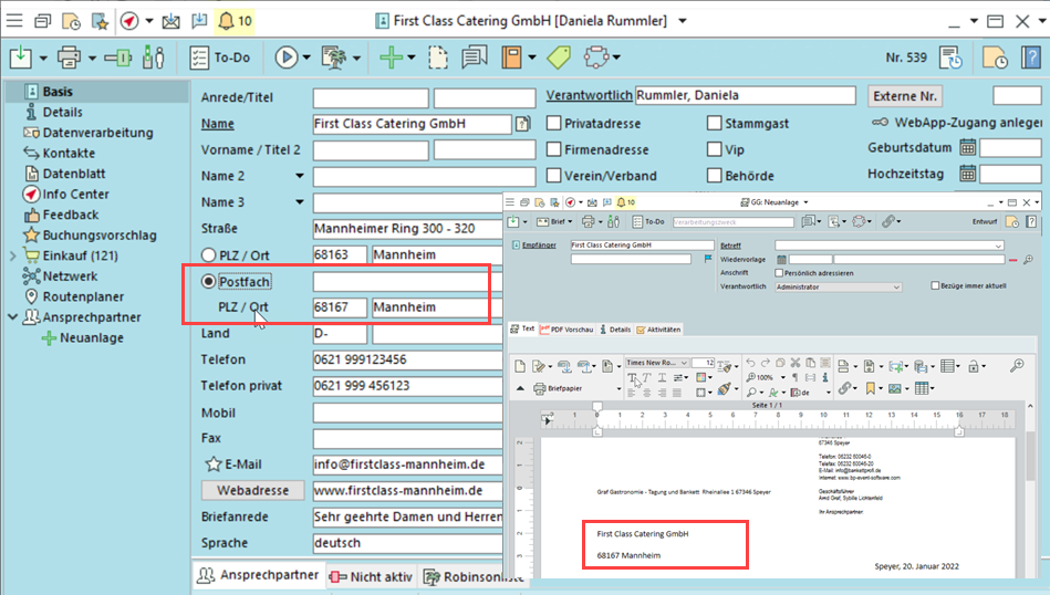 Postfachanschrift ohne eigene Postfachnummer eingeben