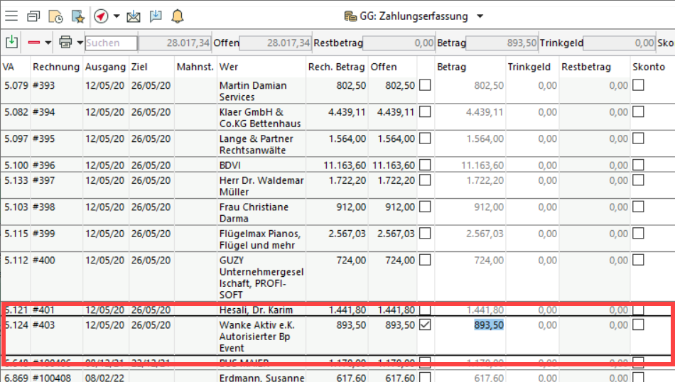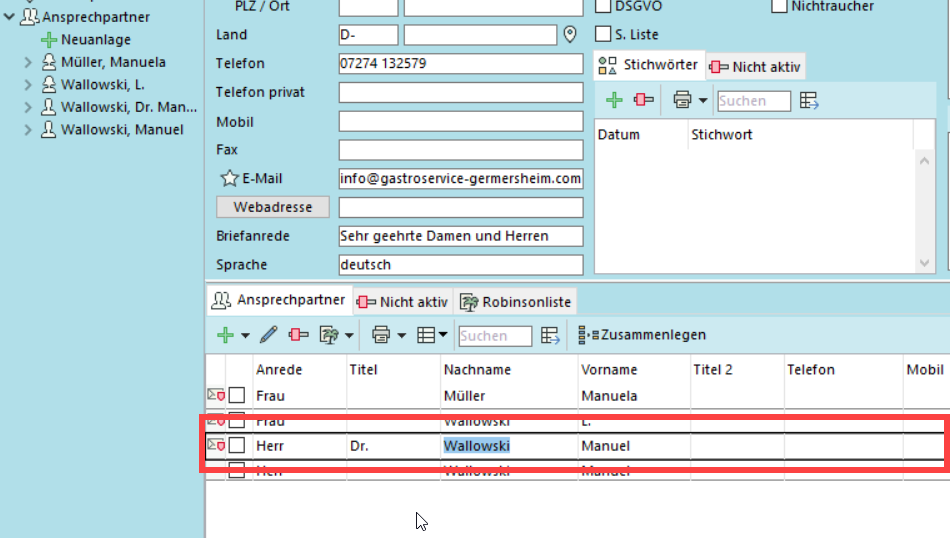 Sobald in einer markierten Zeile Änderungen vorgenommen werden, verschwindet die blaue Hervorhebung. Durch einen dünnen schwarzen Rahmen um die aktive Zeile wird die Orientierung nun erleichtert.