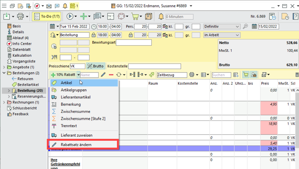 Wenn der Rabattsatz verändert wird, wird in diesem Fall der Verkaufspreis anteilig angepasst.