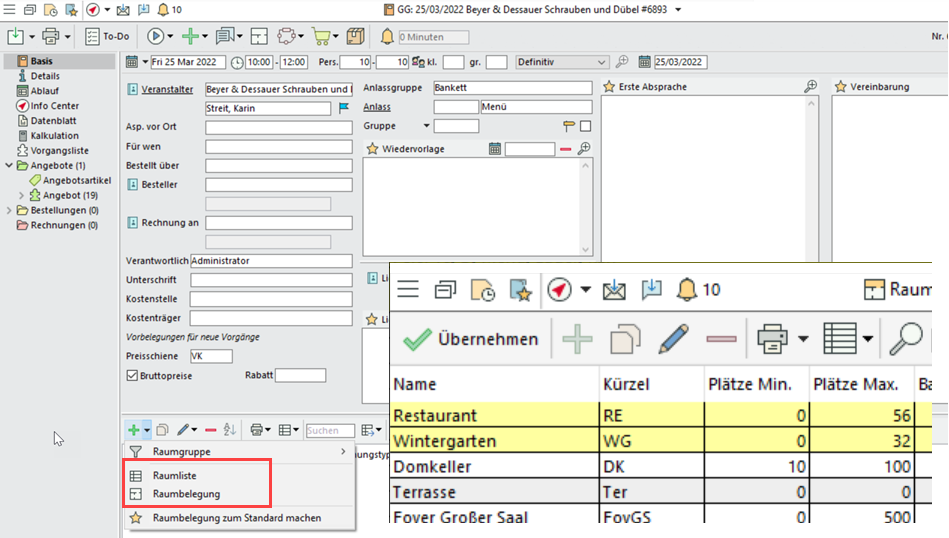 Die Standardmarkierung für belegte Räume in der Raumauswahl von Veranstaltungen wird umgestellt auf einen hellgelben Hintergrund (statt wie bisher kursive Schrift).