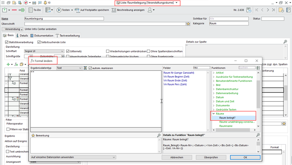 In individuellen Listen bleibt das Standardverhalten weiterhin kursiv. Hier kann mit Hilfe der neuen Funktion "Raum belegt?" über bedingte Formatierung eine beliebige Darstellung gewählt werden.