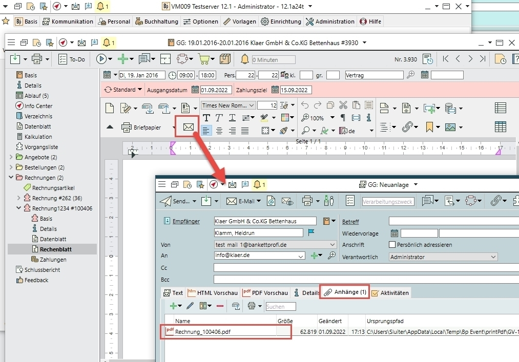Versenden Sie über den neu platzierten Button "Dokument als PDF-Anhang per E-Mail senden", Dokumente die nach dem Versand auf beiden Seiten nicht mehr änderbar sein sollen (z.B. Rechnungsversand)