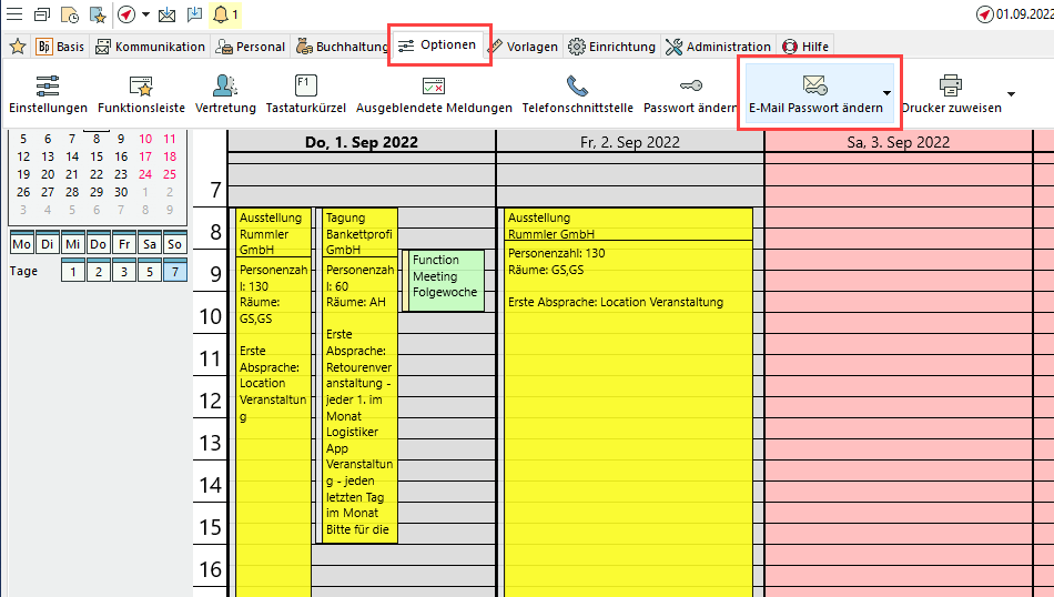 Zum 1.10.2022 ändert Microsoft das Authentifizierungsverfahren für seine E-Mail-Dienste. Bestätigen Sie nach dem Update auf eine aktuelle Version und der Neueinrichtung von Bp Event Ihr Passwort über Optionen > E-Mail-Passwort ändern, um weiterhin mit Office365 kommunizieren zu können.