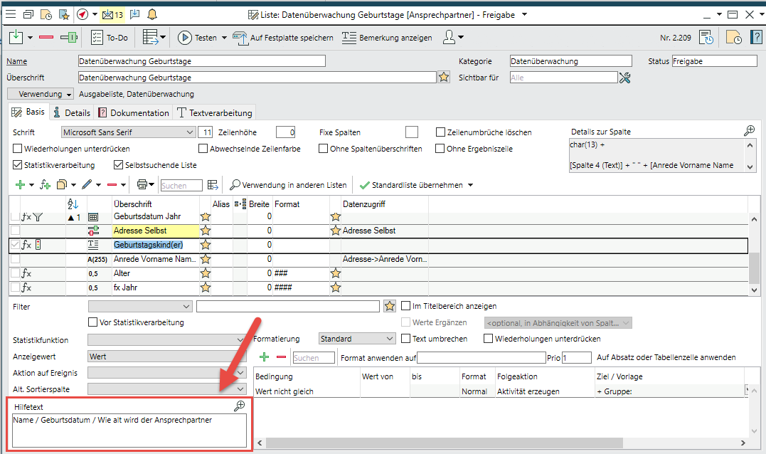Mehr Zeilen und Hilfetexte in der Spaltentabelle von Listen