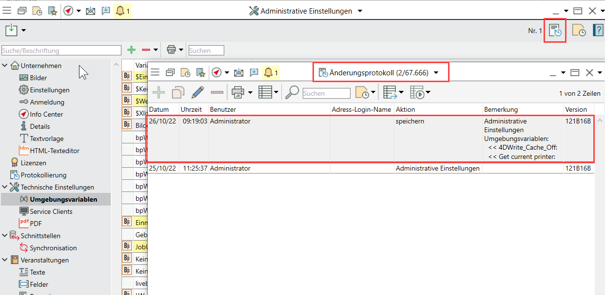 4. Alle Änderungen an Variablen werden im Änderungsprotokoll der Administionsseiten erfasst.