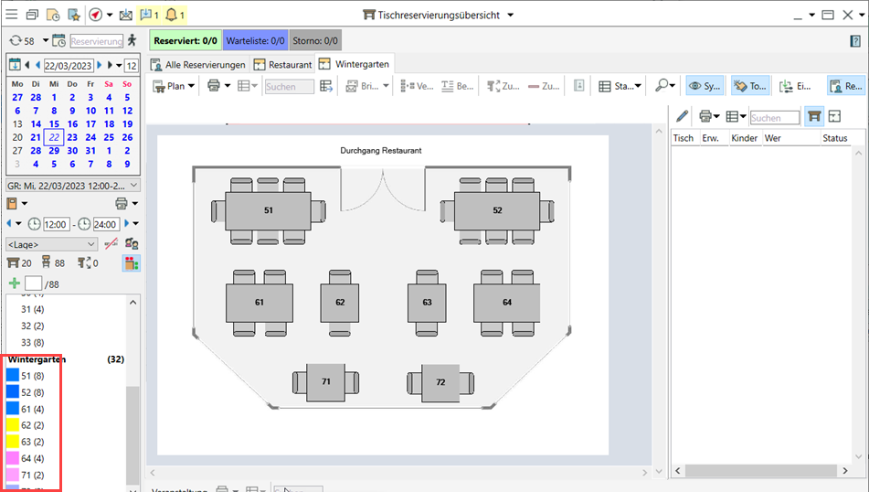Markieren Sie bestimmte Tische im Tischplan mit Ihrem eigenen Farbschema, das sich in der Übersicht und der Liste der freien Tische wiederfindet.