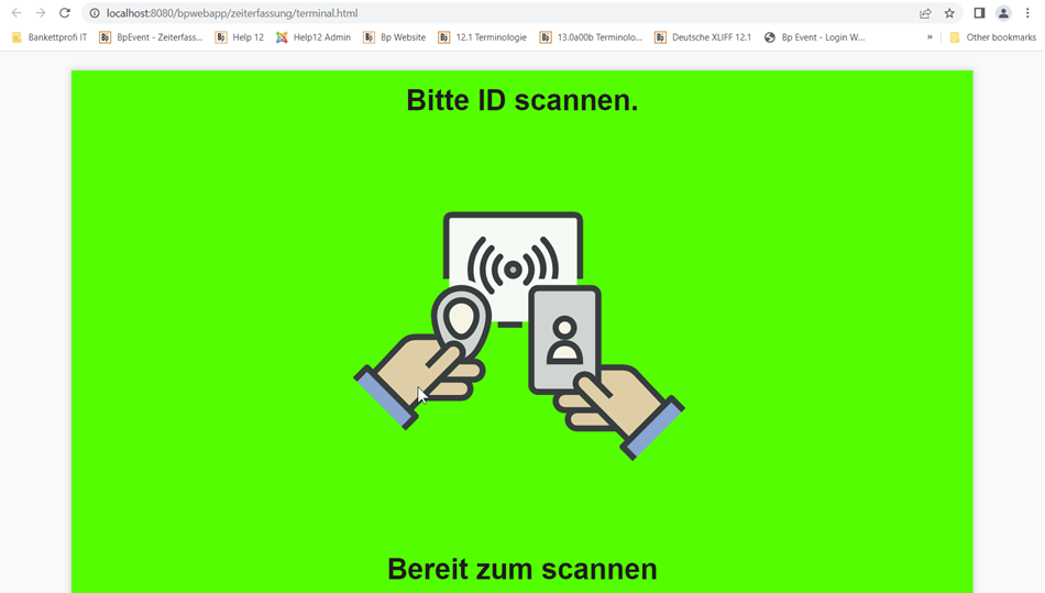 Nach Eingabe (Arbeitszeit starten, Pause starten, Arbeitszeit beenden) wird die Eingabe kurz bestätigt und der Benutzer automatisch wieder abgemeldet, so dass der Terminal bereit ist für die nächste Anmeldung.