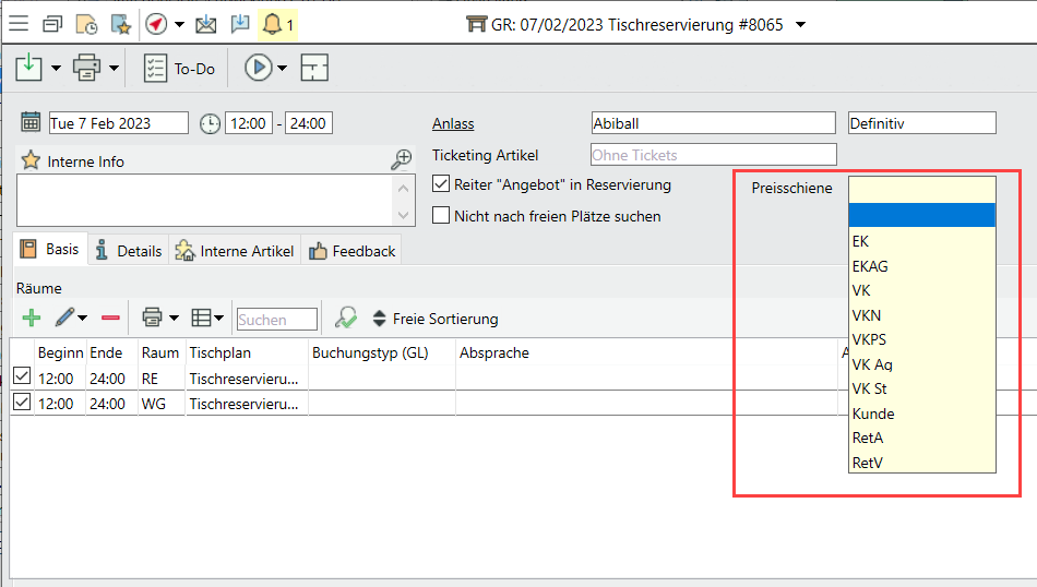 In jeder Tischreservierungs-Veranstaltung wählen Sie auf Wunsch eine individuelle Preisschiene aus.