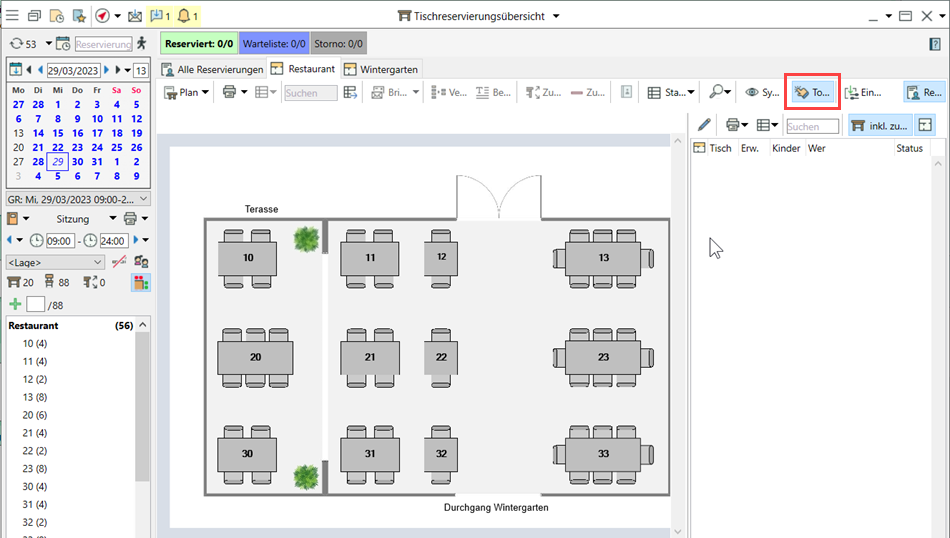 Aktivieren Sie für grafische Tischpläne in der Tischreservierung den Touchmodus, der Eingaben und Tischzuweisungen über Touchscreen ermöglicht.