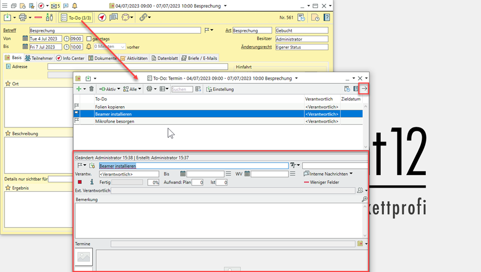 To-Do-Details zur besseren Übersicht neben der Liste öffnen
