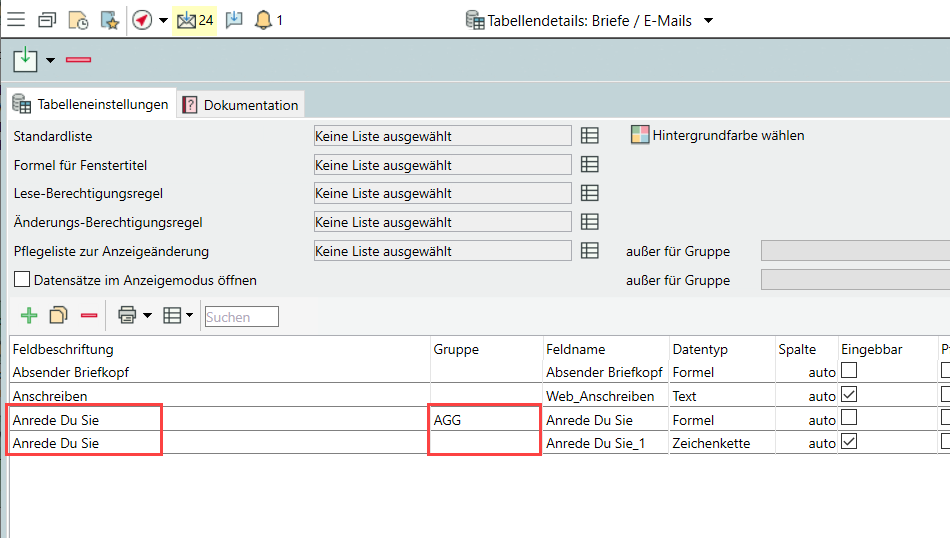 Die Beschriftung von Tabellendetails darf jetzt mehrfach vergeben werden, solange die Felder in unterschiedliche Gruppen gehören. Eindeutig müssen dann nur noch der Feldname sowie Beschriftung und Gruppe sein.