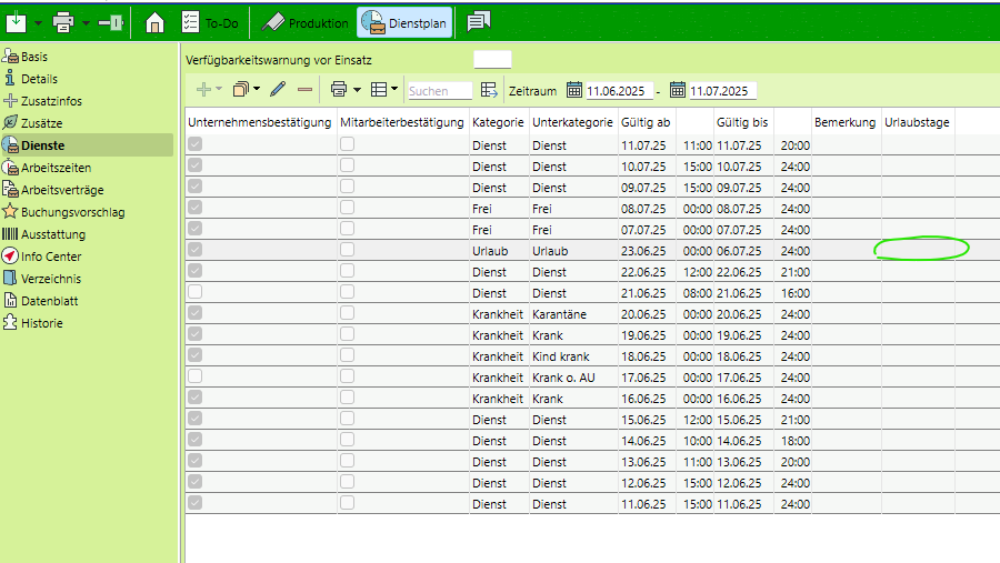 Bsp.: Count Days(!2025-12-01!;!2025-12-31!;"2345";true) ergibt den Wert 16. Dies entspricht den Urlaubstagen für jemanden, der Mo-Do arbeitet und den gesamten Dezember frei nimmt.