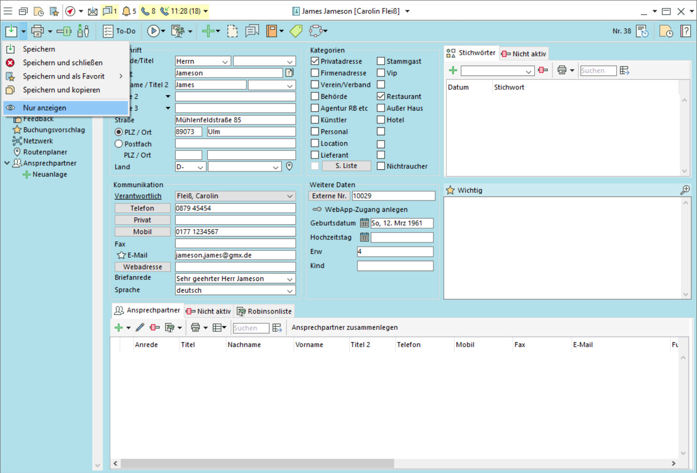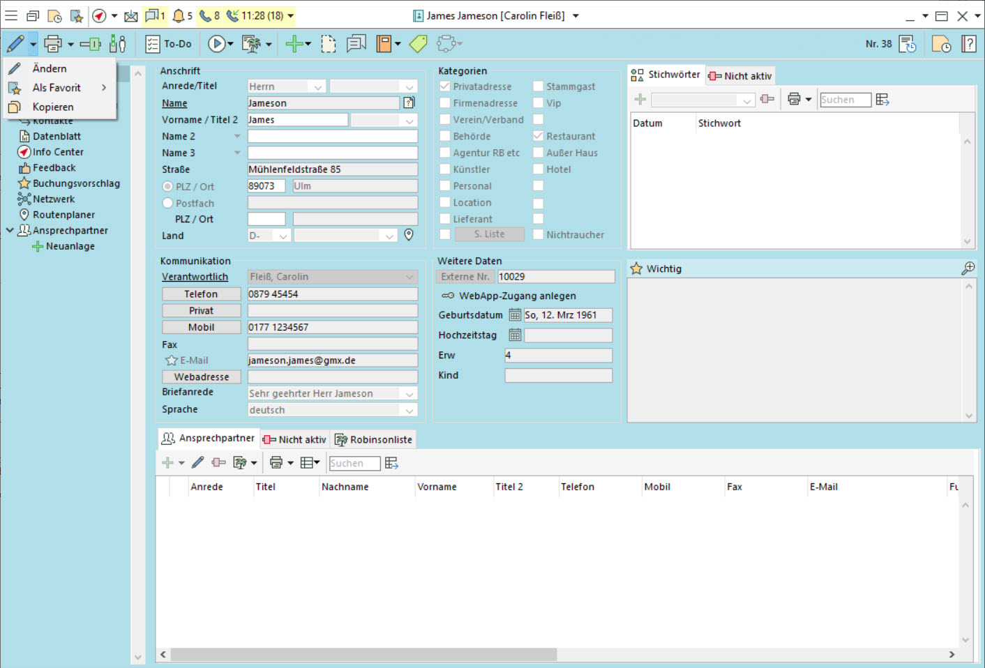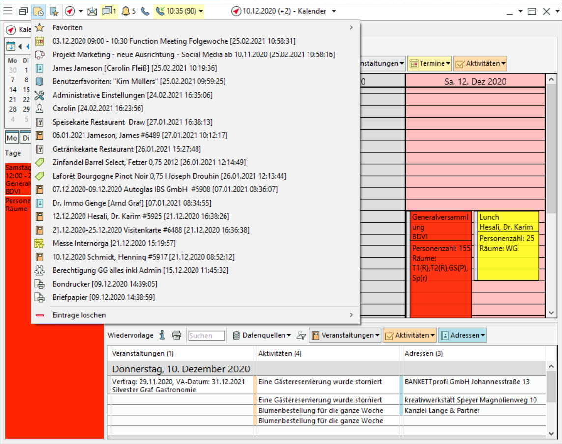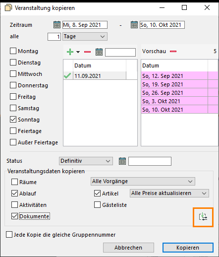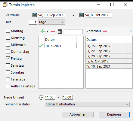 Copying events and appointments has been simplified considerably. You can select a date or start multiple copies. Use picklists and tick boxes to decide which data should be copied.