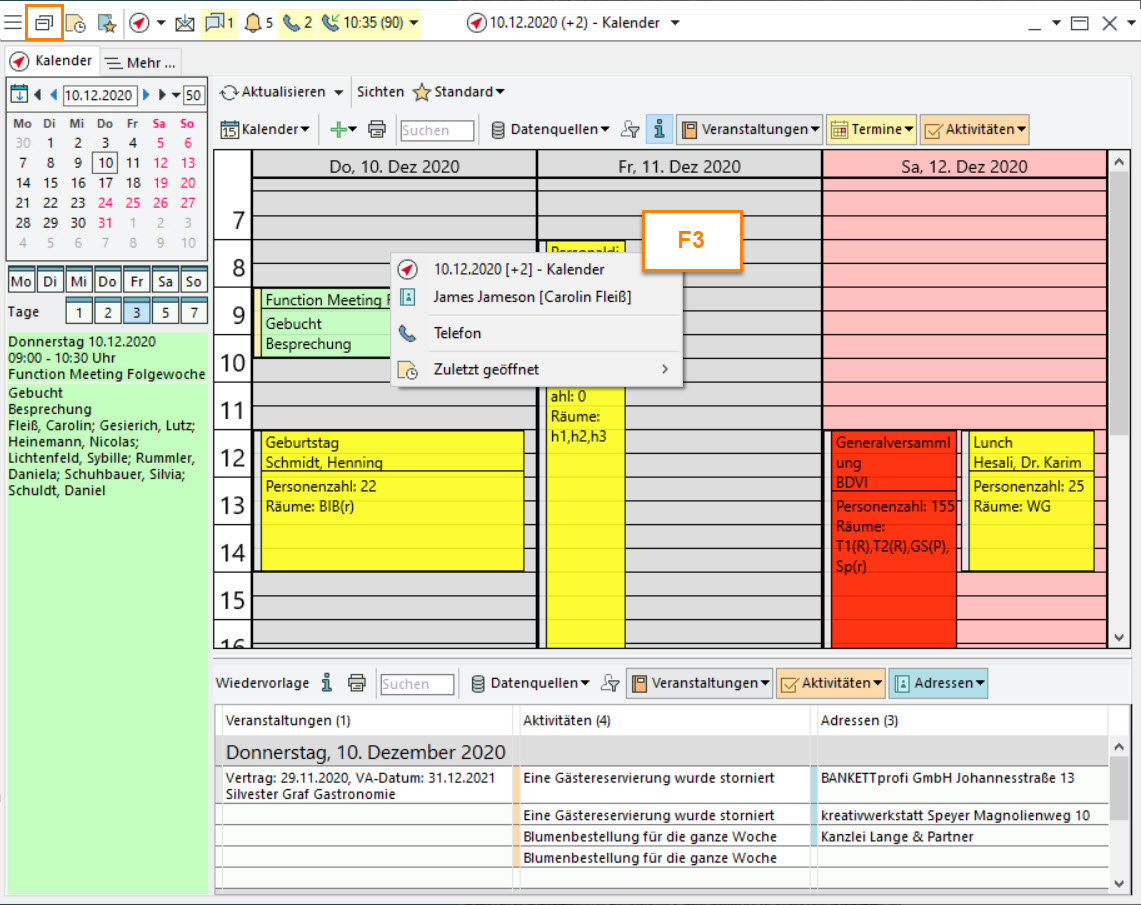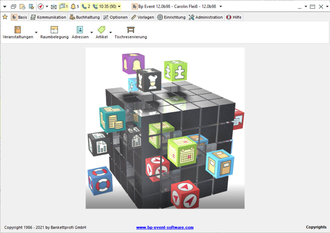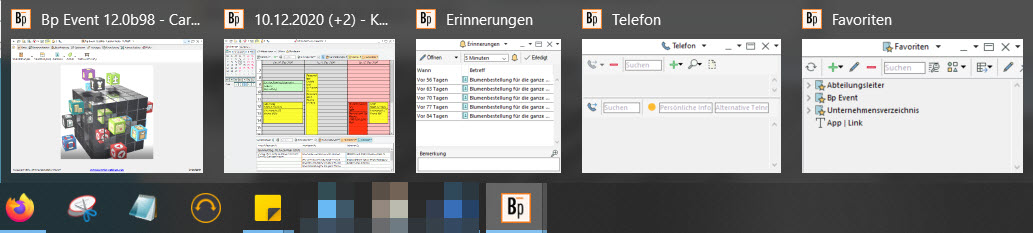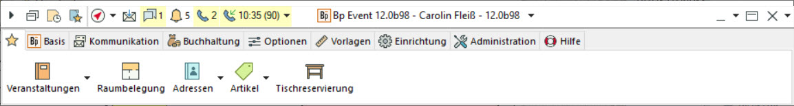 When you start Bp Event 12, a small start window with all the important functions opens on your main monitor. To save space on the screen, the start window can be collapsed. The start window can be brought to the foreground using the keyboard shortcut F2. Note: The previous functions of the F2 key can now be found via Shift F2