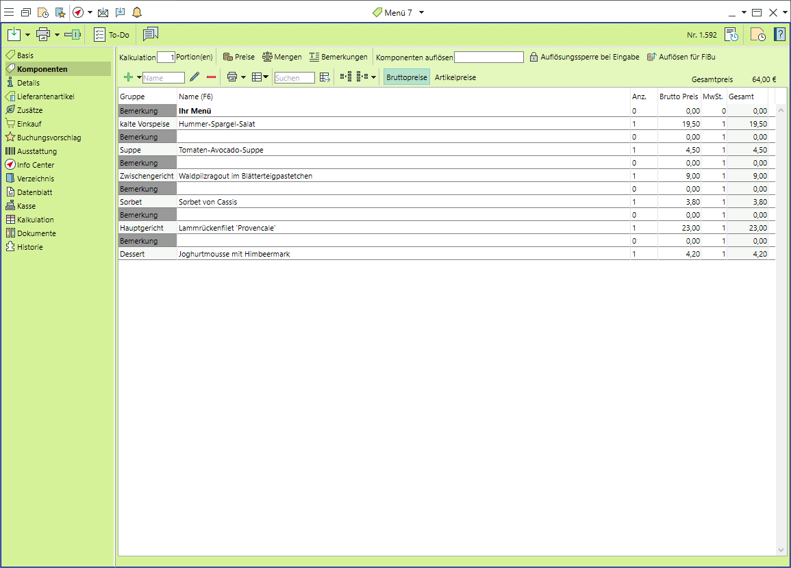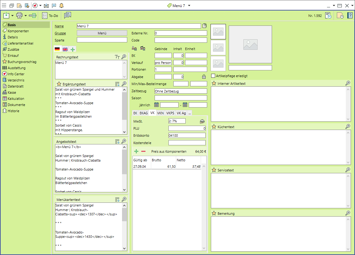Modules: Calculations, Item Details and Recipes; Inventory Control; Shifts and Staff; Purchasing