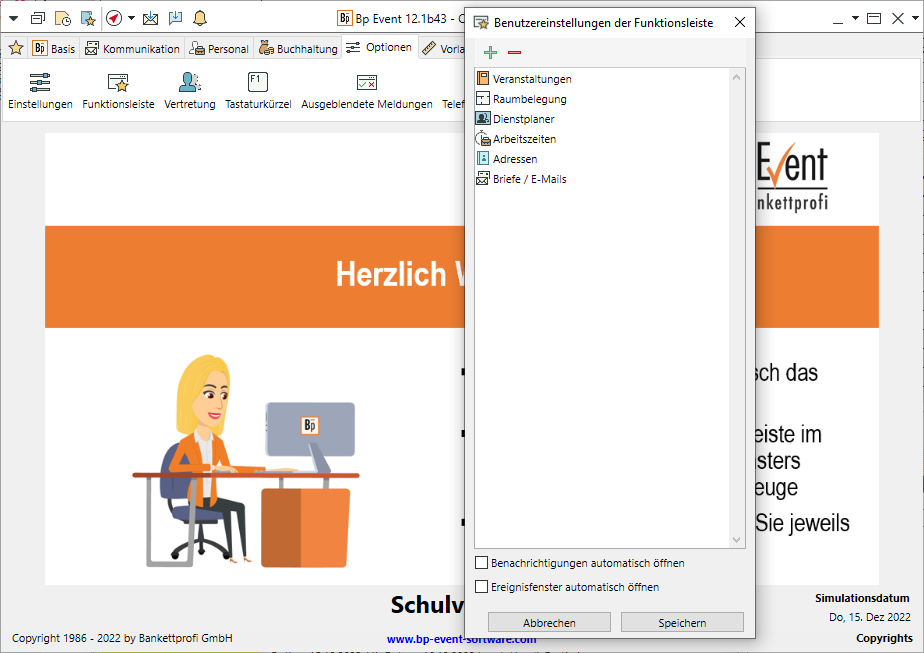 - Activate the automatic opening of the reminder window.M at the bottom of the pane.