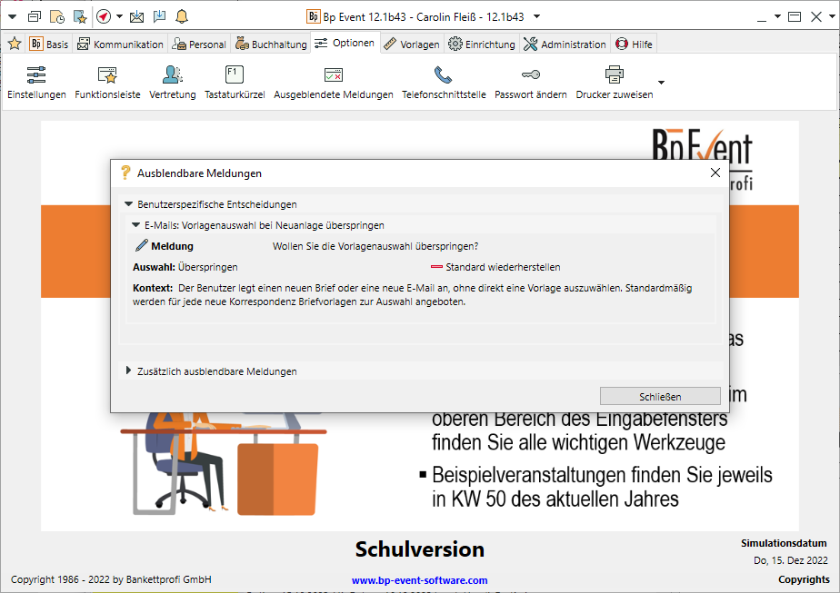 Messages. Then activate Save decision and do not show message again before selecting on your standard response.