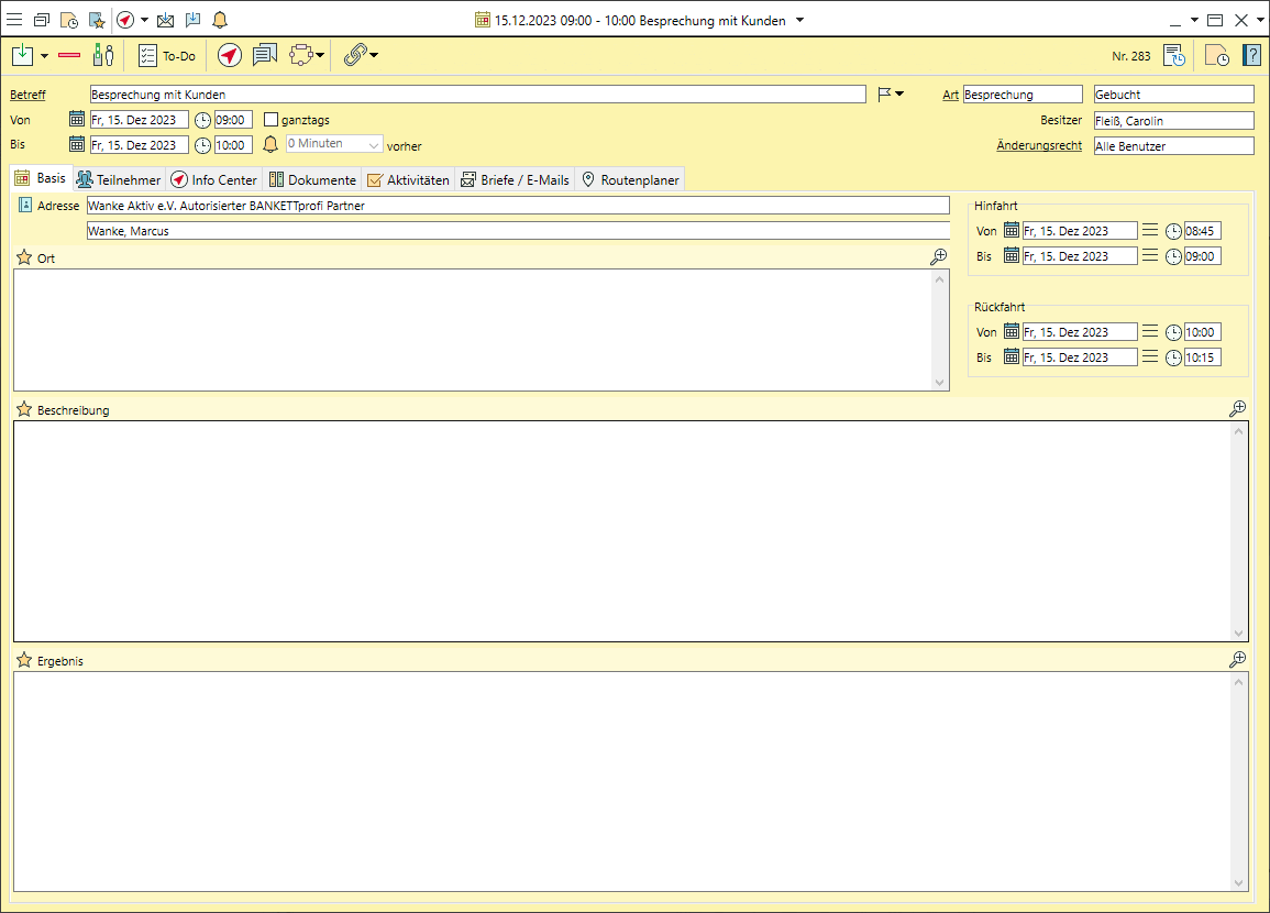 - Enter the Subject, the Type and the Date of the appointment and activate a