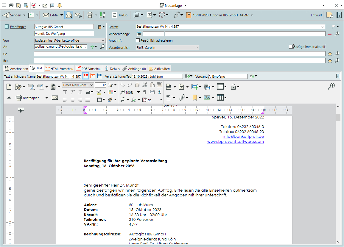 New quote variant, in which the data from the existing quote is adopted but can be changed independently (p.ex. to offer a buffet instead of a seated dinner).