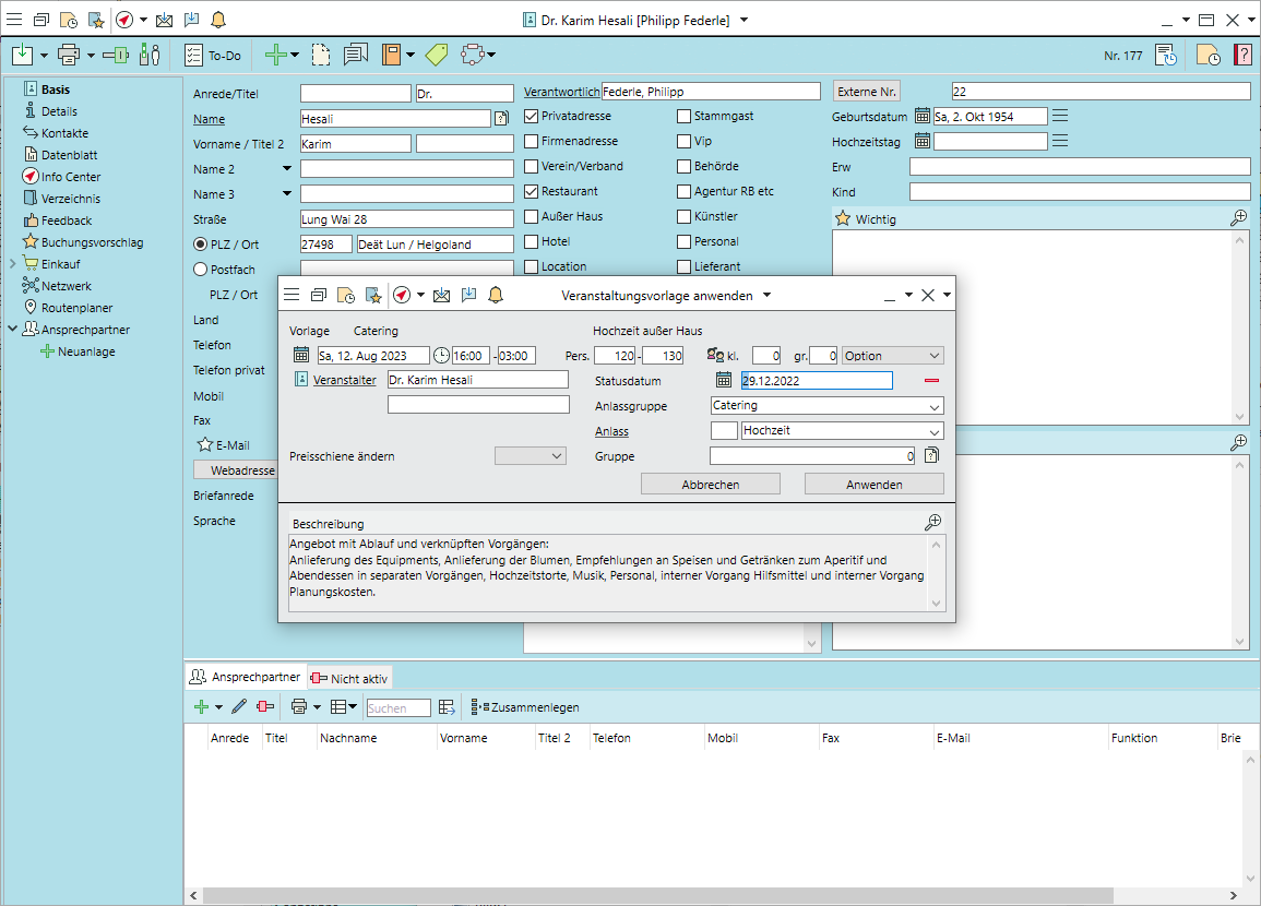 Many events follow a similar pattern and are easy to reproduce on the basis of templates. Event templates in Bp Event are based on normal events that are saved as templates by a user with the appropriate rights. They are then available to every user as a basis for planning complete events, individual segments or event schedules.